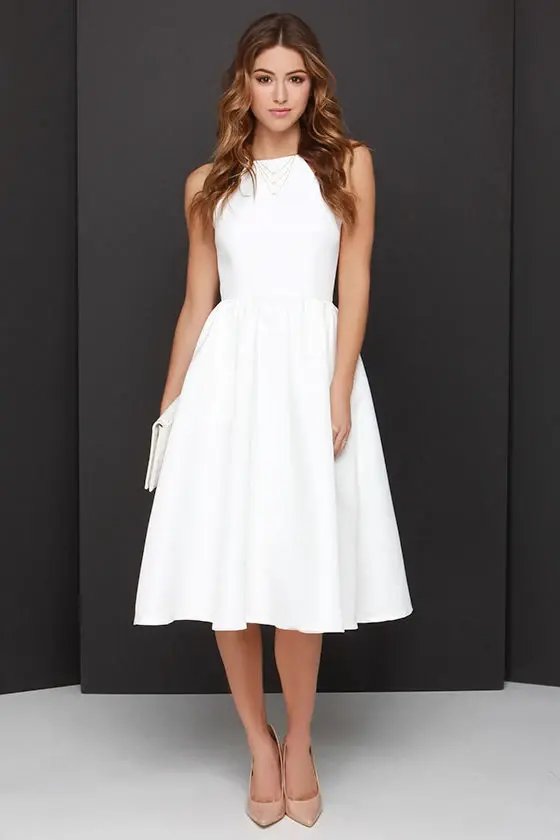 A midi dress is a dress with a hemline that falls between the knee and ankle, usually around mid-calf.